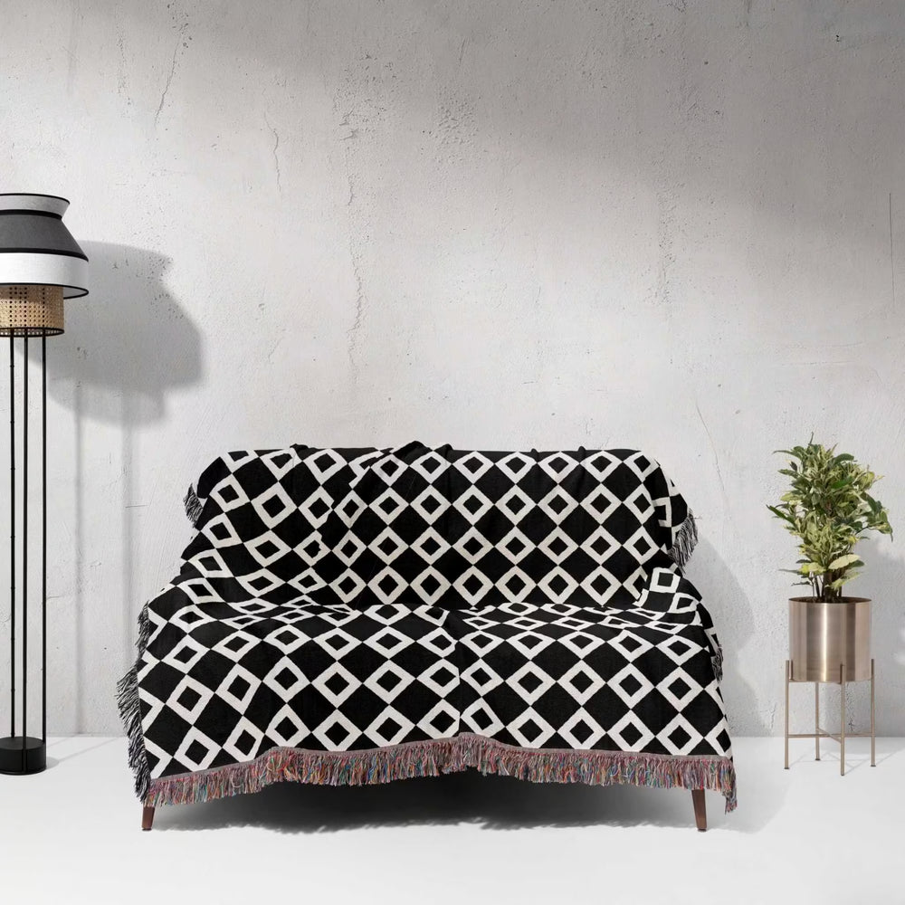 Bring a touch of iconic nostalgia into your living space with this retro checker woven blanket throw tapestry. Taking the classic checkerboard motif and elevating it through a high-contrast, artisanal lens, this piece is the ultimate accessory for the modern-day trendsetter. Whether you're channeling a 70s retro vibe, a minimalist Scandi-chic aesthetic, or the popular "Danish Pastel" look, the rhythmic black-and-ivory grid provides a bold graphic anchor for any room.