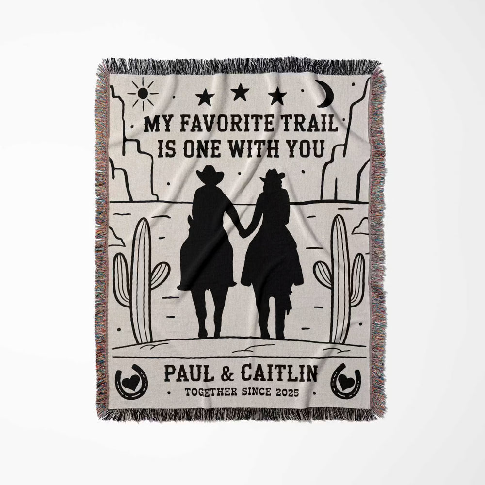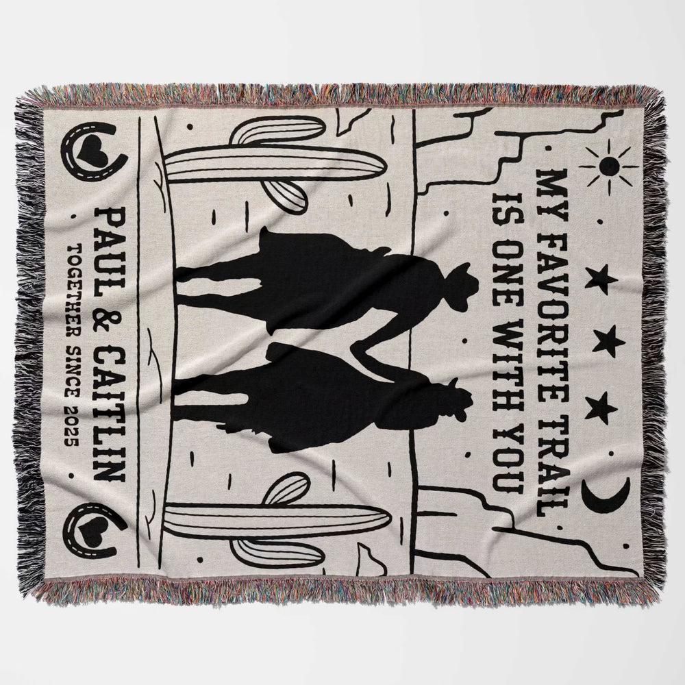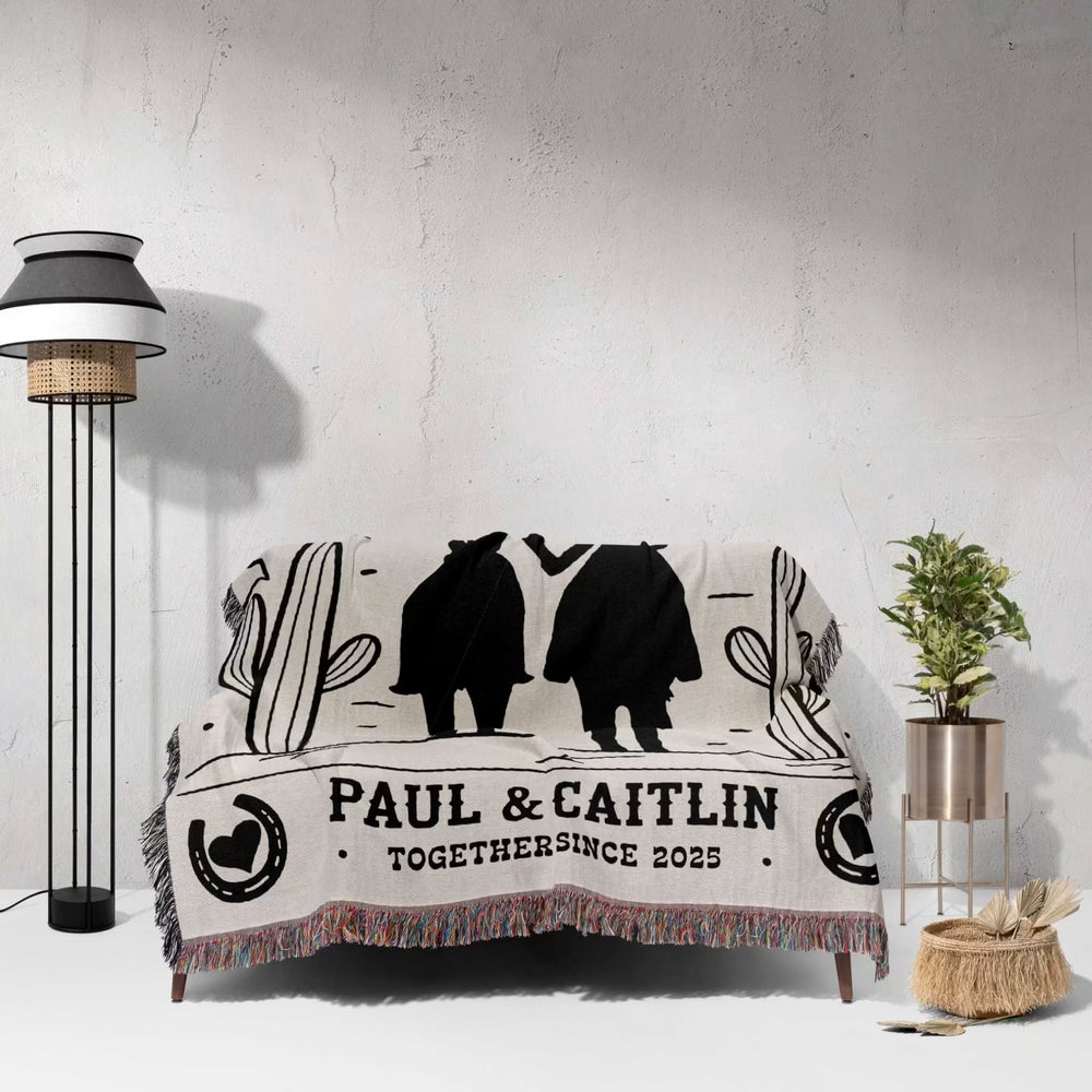 Celebrate the love that rides strong and true with this romantic cowboy and cowgirl woven throw blanket—a perfect cotton anniversary gift for couples who share a love of western charm and rustic living. Featuring a heartwarming silhouette of a cowboy and cowgirl, this 100% cotton blanket captures the spirit of devotion and adventure in every woven thread.
