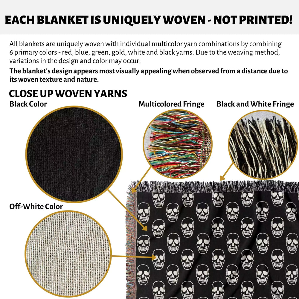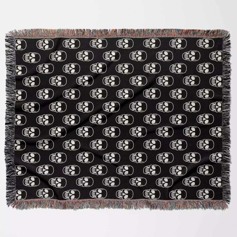 Simple Skull Monochrome Woven Throw Blanket and Tapestry