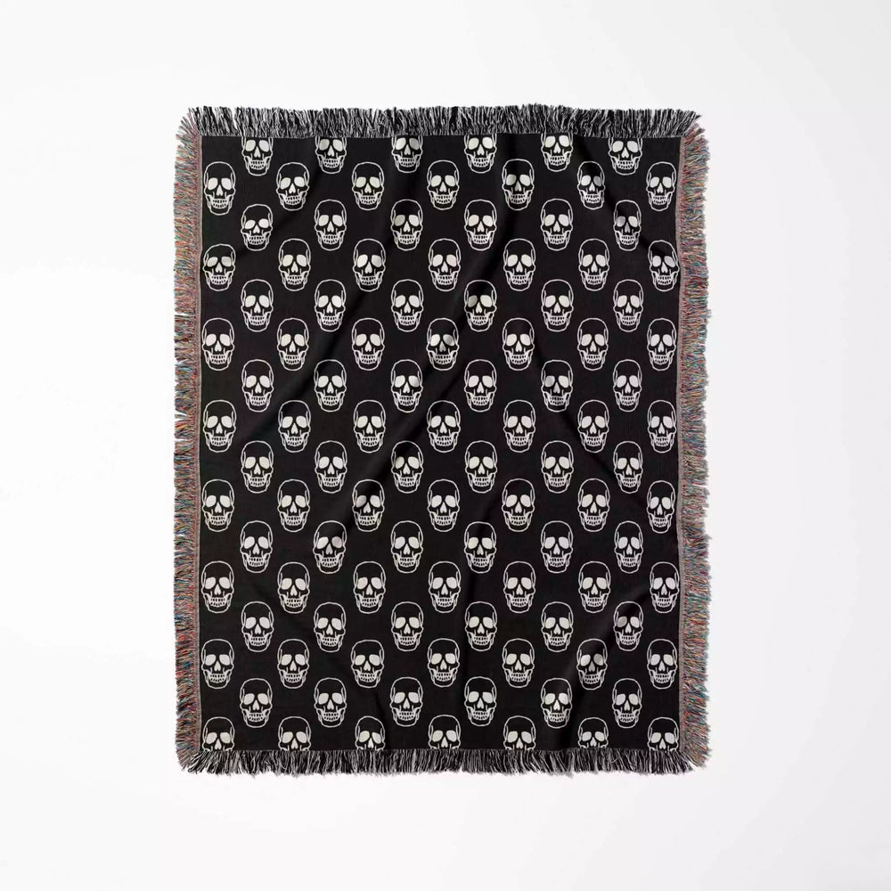 Bring a cool, gothic vibe to your space with a simple skull monochrome woven throw blanket. Made from 100% cotton yarns, this cozy and durable blanket features a clean black and white skull pattern that adds just the right amount of edge to your decor. Use it to stay warm on chilly nights or hang it on your wall for an eye-catching statement piece. The bold yet minimal design makes it perfect for bedrooms, living rooms, or any space that needs a little extra personality. Add a touch of gothic style and comfort with this versatile woven throw.